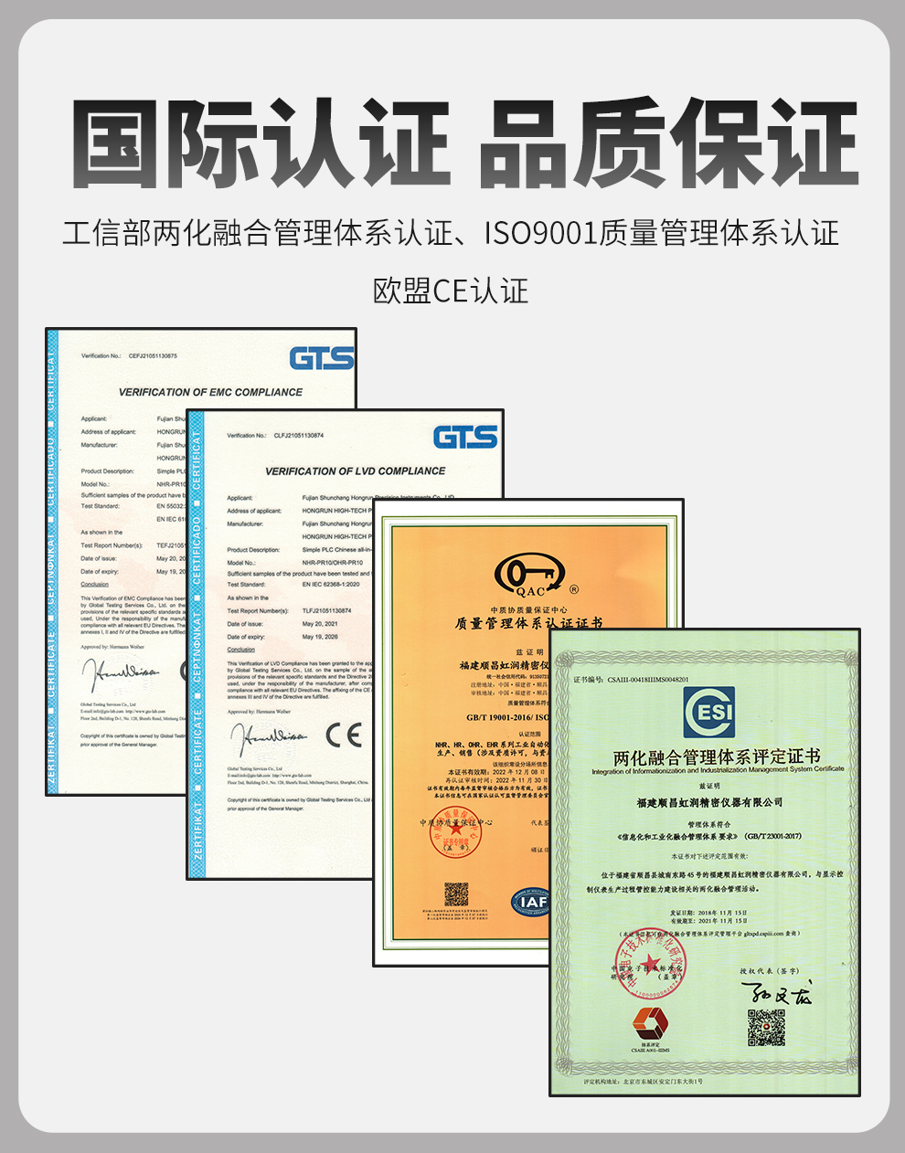 虹潤公司是專業(yè)生產(chǎn)PLC控制器的國家專精特新“小巨人”企業(yè)。生產(chǎn)的簡易PLC中文一體機(jī),具有全中文編程,專業(yè)邏輯控制與時(shí)間控制,全隔離設(shè)計(jì),遠(yuǎn)程RS485通訊監(jiān)測等特點(diǎn)。產(chǎn)品獲得智能化控制器、多通道可編程繼電器等2項(xiàng)國家發(fā)明專利;主持起草流程工業(yè)中電氣/儀表和控制系統(tǒng)的試車國家標(biāo)準(zhǔn),通信系統(tǒng)多通道數(shù)據(jù)采集控制終端規(guī)范軍用標(biāo)準(zhǔn),以及現(xiàn)場設(shè)備集成等5項(xiàng)智能制造國家標(biāo)準(zhǔn),參與國際5G標(biāo)準(zhǔn)制定,取得中文可編程繼電器等2項(xiàng)相關(guān)軟件著作權(quán)。產(chǎn)品廣泛應(yīng)用于實(shí)驗(yàn)室、市政工程、農(nóng)業(yè)養(yǎng)殖、包裝機(jī)械、食品行業(yè)、樓宇自控等諸多領(lǐng)域。