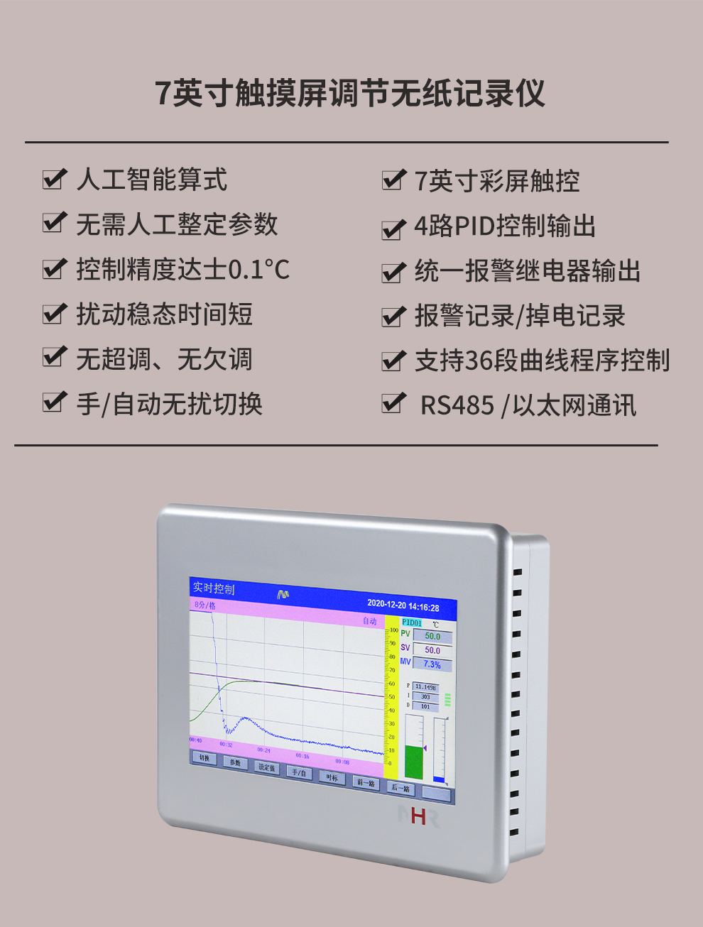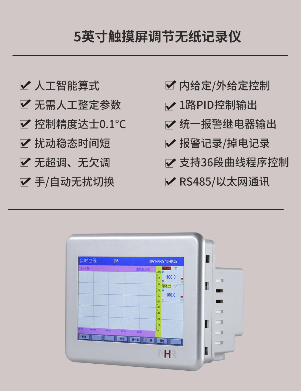 虹潤(rùn)公司是專業(yè)生產(chǎn)無(wú)紙記錄儀的國(guó)家專精特新“小巨人”企業(yè)。生產(chǎn)的觸摸屏調(diào)節(jié)無(wú)紙記錄儀,具有觸摸大屏顯示,真正人工智能算式,無(wú)需人工整定參數(shù),控制精度達(dá)士0.1°C,數(shù)據(jù)記錄與轉(zhuǎn)存, RS485/以太網(wǎng)通訊,5/7/9英寸可選等特點(diǎn)。產(chǎn)品獲得智能化控制器、人工智能調(diào)節(jié)器及調(diào)節(jié)方法、模糊PID控制儀及控制方法、平板無(wú)紙記錄儀、巡回檢測(cè)顯示方法及裝置等5項(xiàng)國(guó)家發(fā)明專利,主持起草物聯(lián)網(wǎng)智能記錄儀表通用技術(shù)條件、物聯(lián)網(wǎng)智能溫度儀表通用技術(shù)條件、工業(yè)過(guò)程測(cè)量和控制系統(tǒng)用智能調(diào)節(jié)器等3項(xiàng)國(guó)家標(biāo)準(zhǔn),通信系統(tǒng)多通道數(shù)據(jù)采集控制終端規(guī)范軍用標(biāo)準(zhǔn),以及空間數(shù)據(jù)與信息數(shù)據(jù)傳輸系統(tǒng)等2項(xiàng)航天標(biāo)準(zhǔn),參與國(guó)際5G標(biāo)準(zhǔn)制定,取得觸摸屏彩色調(diào)節(jié)無(wú)紙記錄儀等3項(xiàng)相關(guān)軟件著作權(quán)。產(chǎn)品廣泛應(yīng)用于電力、石化、冶金、化工、食品、制藥、熱處理、水處理、機(jī)械配套等諸多領(lǐng)域。
