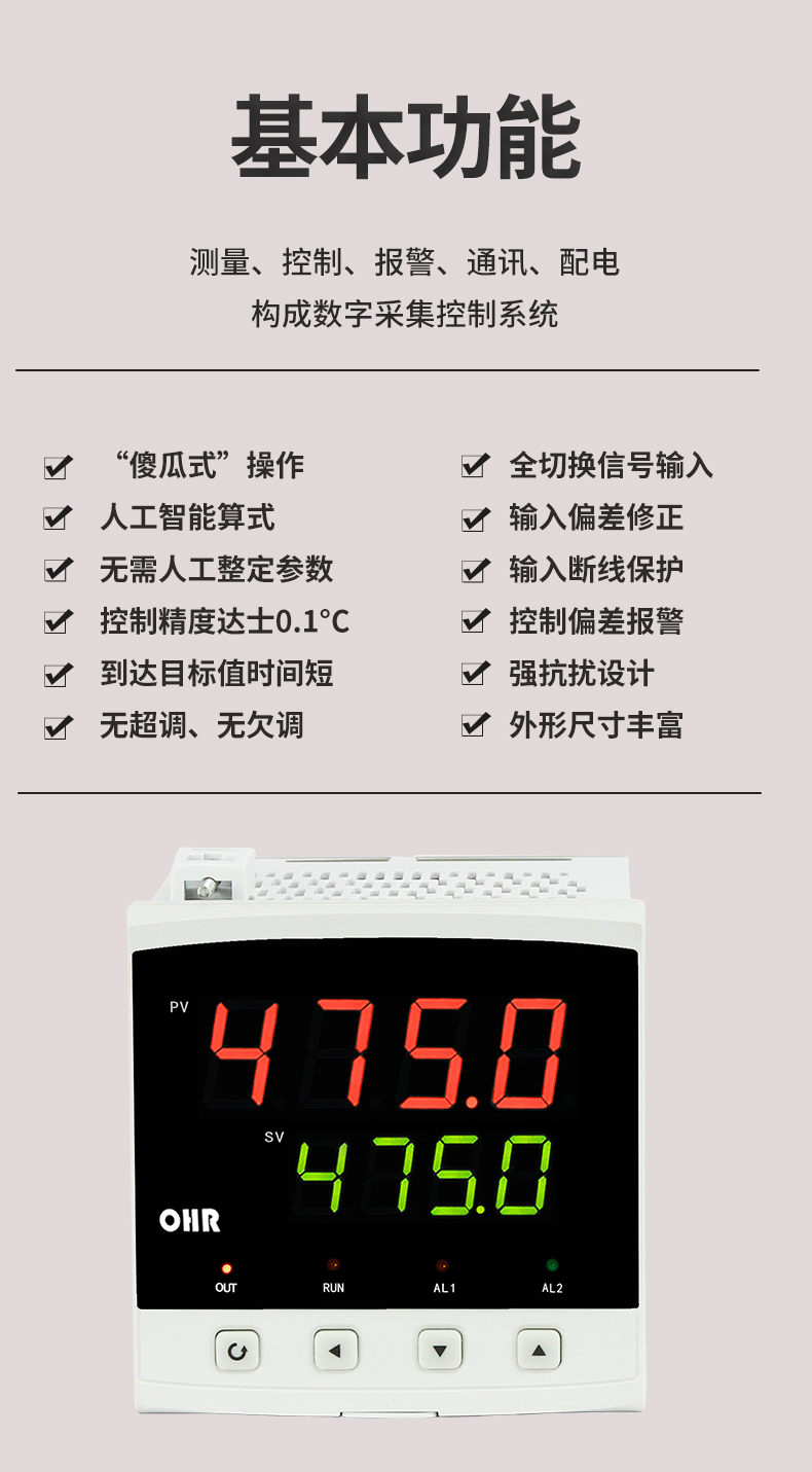 虹潤公司是專業(yè)生產(chǎn)溫控器的國家專精特新“小巨人”企業(yè)。生產(chǎn)的傻瓜式智能溫控器,具有傻瓜式操作,自整定PID算式,無需人工整定參數(shù),控制精度可達±0.1°C,高抗干擾等特點。產(chǎn)品獲得模糊PID控制儀及控制方法、人工智能調節(jié)器、智能化控制器、移相觸發(fā)控制器、閥門自動手動無擾動操作控制方法及裝置等5項國家發(fā)明專利,主持起草工業(yè)過程控制系統(tǒng)用模擬輸入兩位或多位輸出儀表、物聯(lián)網(wǎng)智能溫度儀表通用技術條件、工業(yè)過程測量和控制系統(tǒng)用智能調節(jié)器等3項國家標準,以及通信系統(tǒng)多通道數(shù)據(jù)采集控制終端規(guī)范軍用標準,參與國際5G標準制定,取得傻瓜式模糊PID調節(jié)儀等3項相關軟件著作權。產(chǎn)品廣泛應用于電力、石化,冶金、制藥、食品等幾乎所有工業(yè)現(xiàn)場,實現(xiàn)精準控溫,保障生產(chǎn)安全與質量。