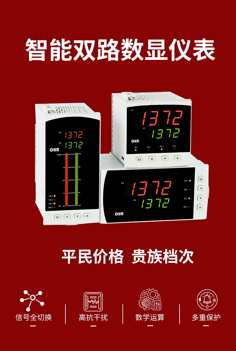 虹潤(rùn)公司是專業(yè)生產(chǎn)數(shù)顯表的國(guó)家專精特新“小巨人”企業(yè),生產(chǎn)的智能雙路數(shù)顯儀表,具有全切換信號(hào)輸入,加減乘除數(shù)學(xué)運(yùn)算,高抗干擾,過(guò)壓過(guò)流保護(hù),RS485/RS232通訊等特點(diǎn)。產(chǎn)品獲得巡回檢測(cè)顯示方法及裝置、儀表殼體等2項(xiàng)國(guó)家發(fā)明專利,主持起草工業(yè)過(guò)程控制系統(tǒng)用模擬輸入兩位或多位輸出儀表、物聯(lián)網(wǎng)智能溫度儀表通用技術(shù)條件等2項(xiàng)國(guó)家標(biāo)準(zhǔn),,以及通信系統(tǒng)多通道數(shù)據(jù)采集控制終端規(guī)范軍用標(biāo)準(zhǔn),參與國(guó)際5G標(biāo)準(zhǔn)制定,取得雙回路數(shù)字顯示控制儀表等3項(xiàng)相關(guān)軟件著作權(quán)。產(chǎn)品廣泛應(yīng)用于電力、石化、冶金、化工、造紙、食品、輕工、制藥、熱處理、水處理、機(jī)械配套等各種工業(yè)現(xiàn)場(chǎng)。