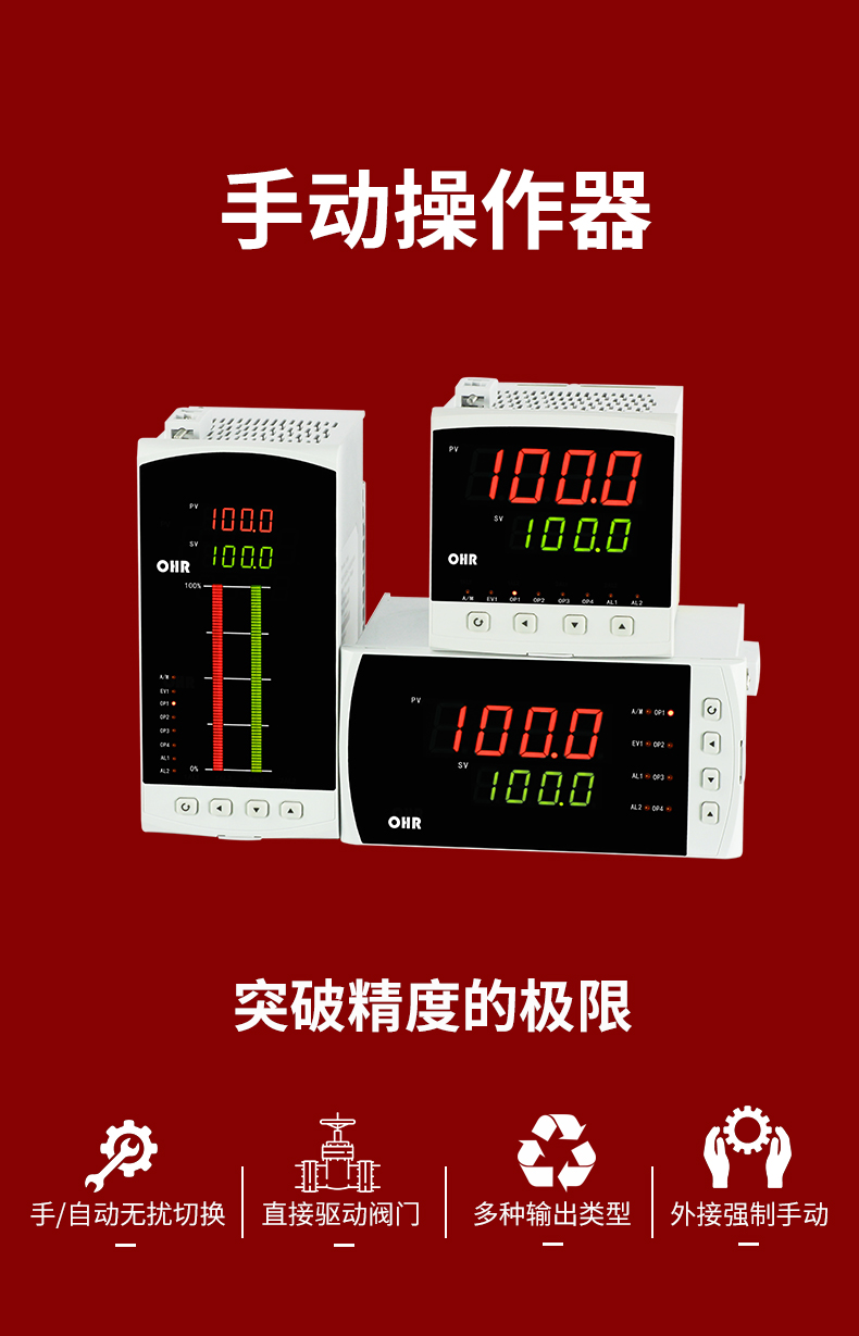 虹潤公司是專業(yè)生產(chǎn)智能手操器的國家專精特新“小巨人”企業(yè),生產(chǎn)的手動操作器,具有手自動無擾切換,直接調(diào)節(jié)閥門,多種輸出類型,外接強制手動功能,高抗干擾等特點。產(chǎn)品獲得閥門自動手動無擾動操作控制方法及裝置、模糊PID控制儀及控制方法、移相觸發(fā)控制器等3項國家標(biāo)準(zhǔn),主持起草工業(yè)過程控制系統(tǒng)用模擬輸入兩位或多位輸出儀表、流程工業(yè)中電氣/儀表和控制系統(tǒng)的試車等2項國家標(biāo)準(zhǔn),以及通信系統(tǒng)多通道數(shù)據(jù)采集控制終端規(guī)范軍用標(biāo)準(zhǔn),參與國際5G標(biāo)準(zhǔn)制定,取得手動操作器等3項相關(guān)軟件著作權(quán)。產(chǎn)品廣泛應(yīng)用于電力、石化、冶金、化工、造紙、食品、輕工、制藥、熱處理、水處理、機械配套等各種工業(yè)現(xiàn)場。