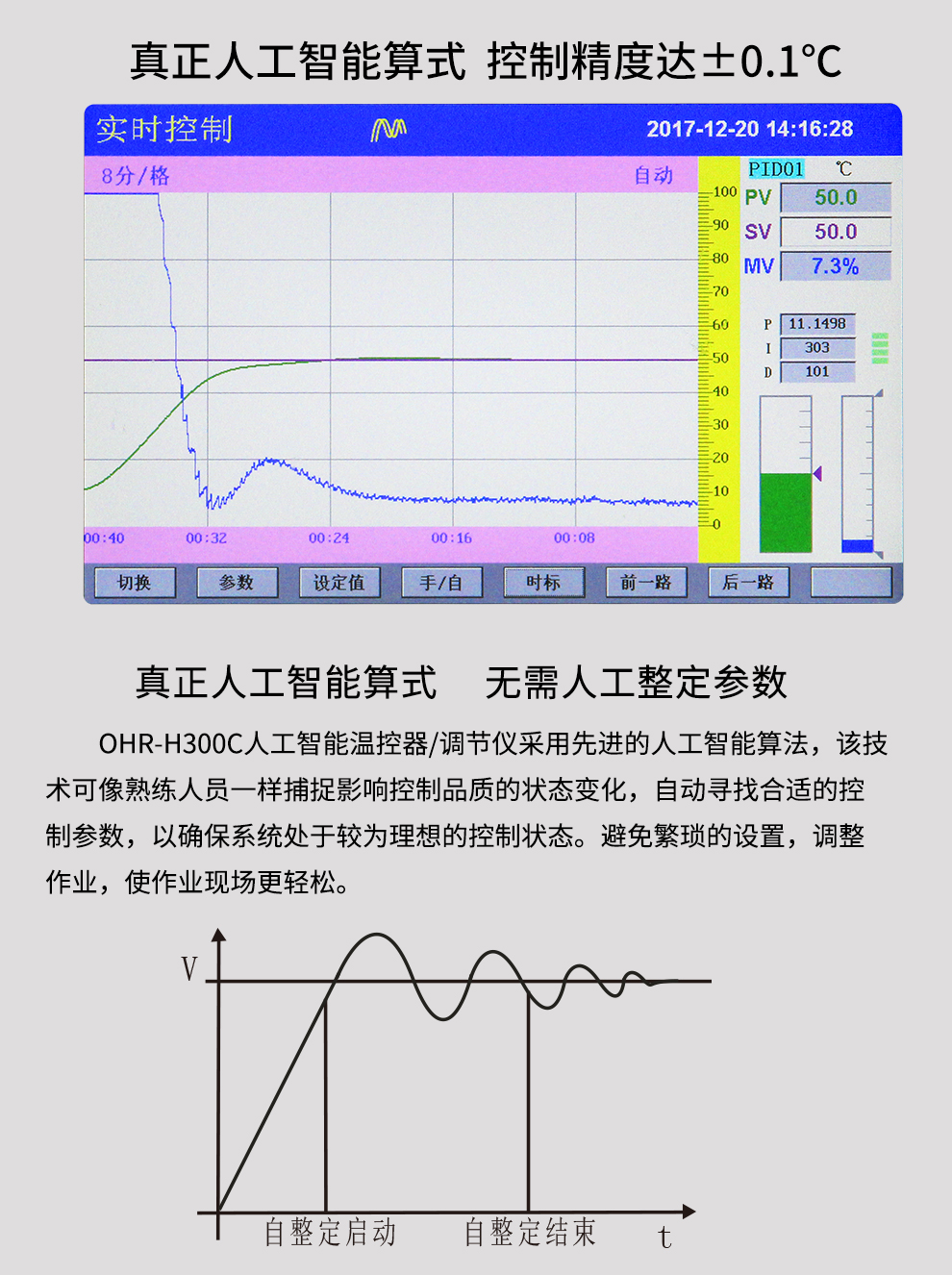 虹潤公司是專業(yè)生產(chǎn)溫控器的國家專精特新“小巨人”企業(yè)。生產(chǎn)的觸摸式溫控器,具有8路PID獨立控制,真正人工智能算式,無需人工整定參數(shù),控制精度達士0.1°C,支持以太網(wǎng)/RS485通訊輸出等特點。產(chǎn)品獲得智能化控制器、人工智能調(diào)節(jié)器及調(diào)節(jié)方法、模糊PID控制儀及控制方法、一種平板無紙記錄儀、巡回檢測顯示方法及裝置等5項國家發(fā)明專利,主持起草物聯(lián)網(wǎng)智能記錄儀表通用技術(shù)條件、物聯(lián)網(wǎng)智能溫度儀表通用技術(shù)條件、工業(yè)過程測量和控制系統(tǒng)用智能調(diào)節(jié)器等3項國家標(biāo)準(zhǔn),通信系統(tǒng)多通道數(shù)據(jù)采集控制終端規(guī)范軍用標(biāo)準(zhǔn),以及空間數(shù)據(jù)與信息數(shù)據(jù)傳輸系統(tǒng)等2項航天標(biāo)準(zhǔn)。參與國際5G標(biāo)準(zhǔn)制定,取得觸摸式彩色調(diào)節(jié)無紙記錄儀等4項相關(guān)軟件著作權(quán)。產(chǎn)品廣泛應(yīng)用于電石化、工業(yè)爐、試驗設(shè)備、注塑機械、包裝機械等需要對現(xiàn)場溫度進行監(jiān)測控制的行業(yè)。
