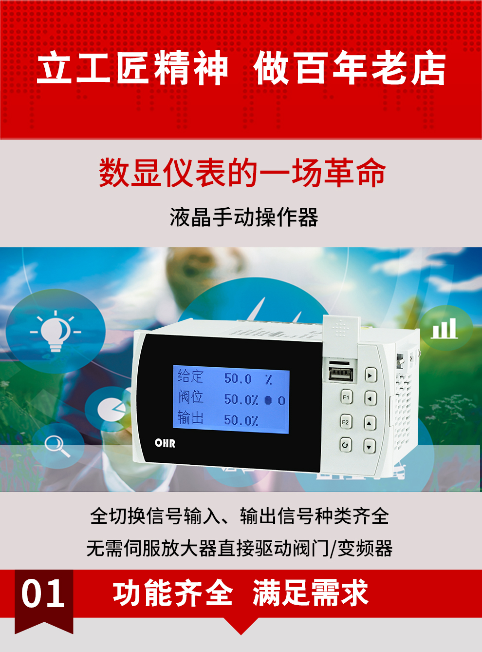 虹潤公司是專業(yè)生產(chǎn)智能手操器的國家專精特新“小巨人”企業(yè),生產(chǎn)的液晶手動(dòng)操作器,具有全切換信號(hào)輸入,通道之間相互隔離,手自動(dòng)無擾動(dòng)切換,配上位機(jī)管理軟件等特點(diǎn)。產(chǎn)品獲得閥門自動(dòng)手動(dòng)無擾動(dòng)操作控制方法及裝置、模糊PID控制儀及控制方法、移相觸發(fā)控制器等3項(xiàng)國家標(biāo)準(zhǔn),主持起草工業(yè)過程控制系統(tǒng)用模擬輸入兩位或多位輸出儀表、流程工業(yè)中電氣/儀表和控制系統(tǒng)的試車等2項(xiàng)國家標(biāo)準(zhǔn),以及通信系統(tǒng)多通道數(shù)據(jù)采集控制終端規(guī)范軍用標(biāo)準(zhǔn),參與國際5G標(biāo)準(zhǔn)制定,取得手動(dòng)操作器等3項(xiàng)相關(guān)軟件著作權(quán)。產(chǎn)品廣泛應(yīng)用于電力、石化、冶金、化工、造紙、食品、輕工、制藥、熱處理、水處理、機(jī)械配套等各種工業(yè)現(xiàn)場。