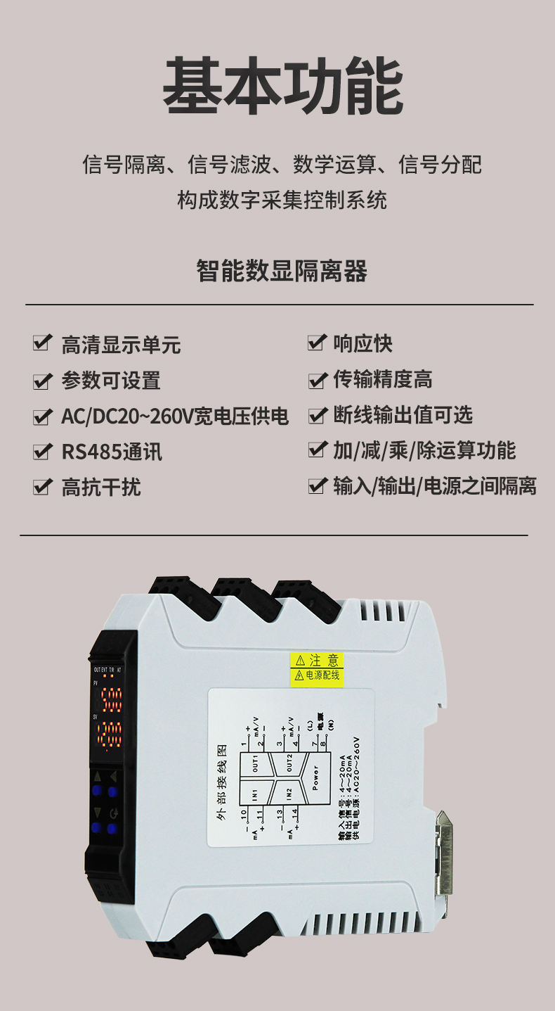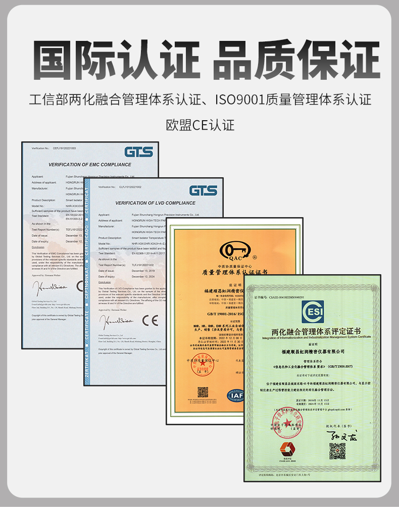 虹潤公司是專業(yè)生產(chǎn)隔離器的國家專精特新“小巨人”企業(yè)。生產(chǎn)的導(dǎo)軌式智能隔離器 ,具有高清顯示單元,參數(shù)可設(shè)置,寬電源供電,響應(yīng)快,帶RS485通訊等特點(diǎn)。產(chǎn)品獲得信號(hào)隔離器、一種二端子模塊、無源信號(hào)隔離器等3項(xiàng)國家發(fā)明專利,主持起草現(xiàn)場(chǎng)設(shè)備工具(FDT)接口規(guī)范、工業(yè)過程測(cè)量和控制系統(tǒng)用隔離式安全柵、工業(yè)過程測(cè)量和控制系統(tǒng)用配電器等3項(xiàng)國家標(biāo)準(zhǔn),以及通信系統(tǒng)多通道數(shù)據(jù)采集控制終端規(guī)范軍用標(biāo)準(zhǔn),參與國際5G標(biāo)準(zhǔn)制定,取得智能隔離器等2項(xiàng)相關(guān)軟件著作權(quán)。產(chǎn)品廣泛應(yīng)用于電力、石化,冶金、制藥、水處理、機(jī)械配套等各種工業(yè)現(xiàn)場(chǎng)。