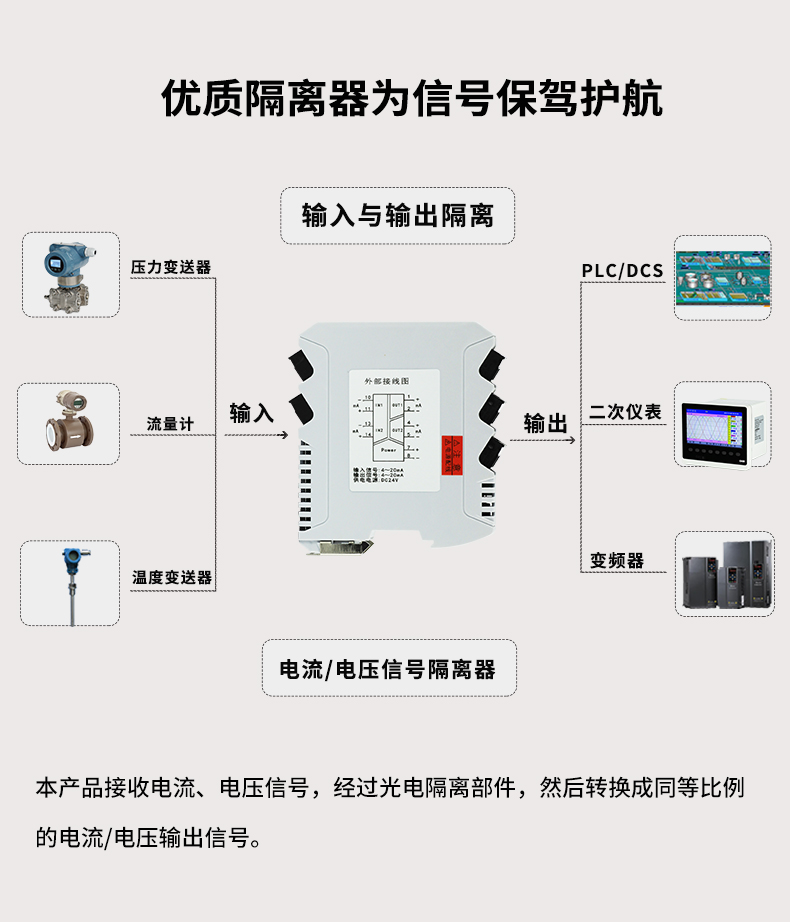 虹潤公司是專業(yè)生產(chǎn)隔離器的國家專精特新“小巨人”企業(yè)。生產(chǎn)的智能信號隔離器涵蓋電流電壓變送器、溫度變送器、配電器、頻率轉(zhuǎn)換器、開關(guān)量轉(zhuǎn)換器及通訊轉(zhuǎn)換器等多種產(chǎn)品類型。產(chǎn)品獲得信號隔離器、一種二端子模塊、無源信號隔離器等3項國家發(fā)明專利,主持起草現(xiàn)場設(shè)備工具(FDT)接口規(guī)范、工業(yè)過程測量和控制系統(tǒng)用隔離式安全柵、工業(yè)過程測量和控制系統(tǒng)用配電器等3項國家標準,以及通信系統(tǒng)多通道數(shù)據(jù)采集控制終端規(guī)范軍用標準,參與國際5G標準制定,取得導軌式智能隔離器、頻率轉(zhuǎn)換器等3項相關(guān)軟件著作權(quán)。產(chǎn)品廣泛電力、冶金、工業(yè)電爐、變電站、高壓電機房等需要電隔離的工業(yè)自動化控制系統(tǒng)。