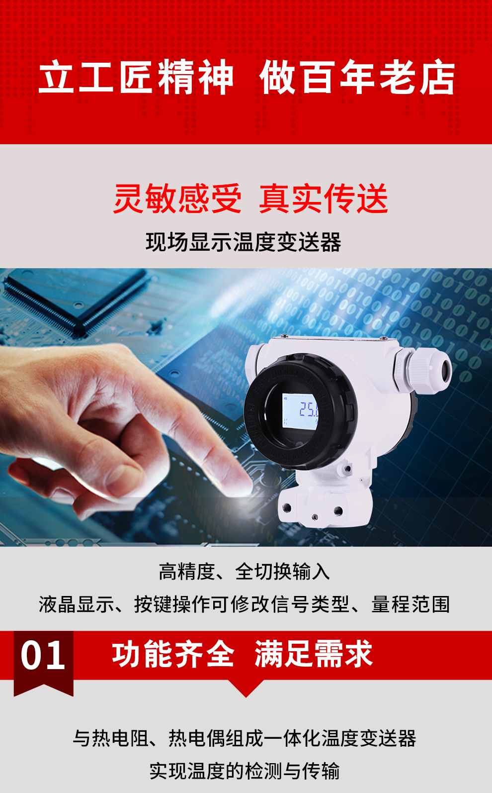 虹潤公司是專業(yè)生產(chǎn)溫度變送器的國家專精特新“小巨人”企業(yè)。生產(chǎn)的現(xiàn)場顯示溫度變送器,具有可修改輸入信號類型,測量精度高,響應(yīng)時間快,IP65防護等級等特點。該產(chǎn)品通過SIL 功能安全認證,還獲得具備減震抗干擾能力的溫度變送器、信號隔離器、一種二端子模塊、無源信號隔離器等3項國家發(fā)明專利。主持起草物聯(lián)網(wǎng)智能溫度儀表、現(xiàn)場設(shè)備工具(FDT)接口規(guī)范、工業(yè)過程測量和控制系統(tǒng)用溫度變送器等3項國家標(biāo)準(zhǔn),以及通信系統(tǒng)多通道數(shù)據(jù)采集控制終端規(guī)范軍用標(biāo)準(zhǔn)。參與國際5G標(biāo)準(zhǔn)制定,取得高精度溫度變送器等3項相關(guān)軟件著作權(quán)。產(chǎn)品廣泛應(yīng)用于石油、化工、電力、冶金、制藥、食品、水處理等各種工業(yè)領(lǐng)域。
