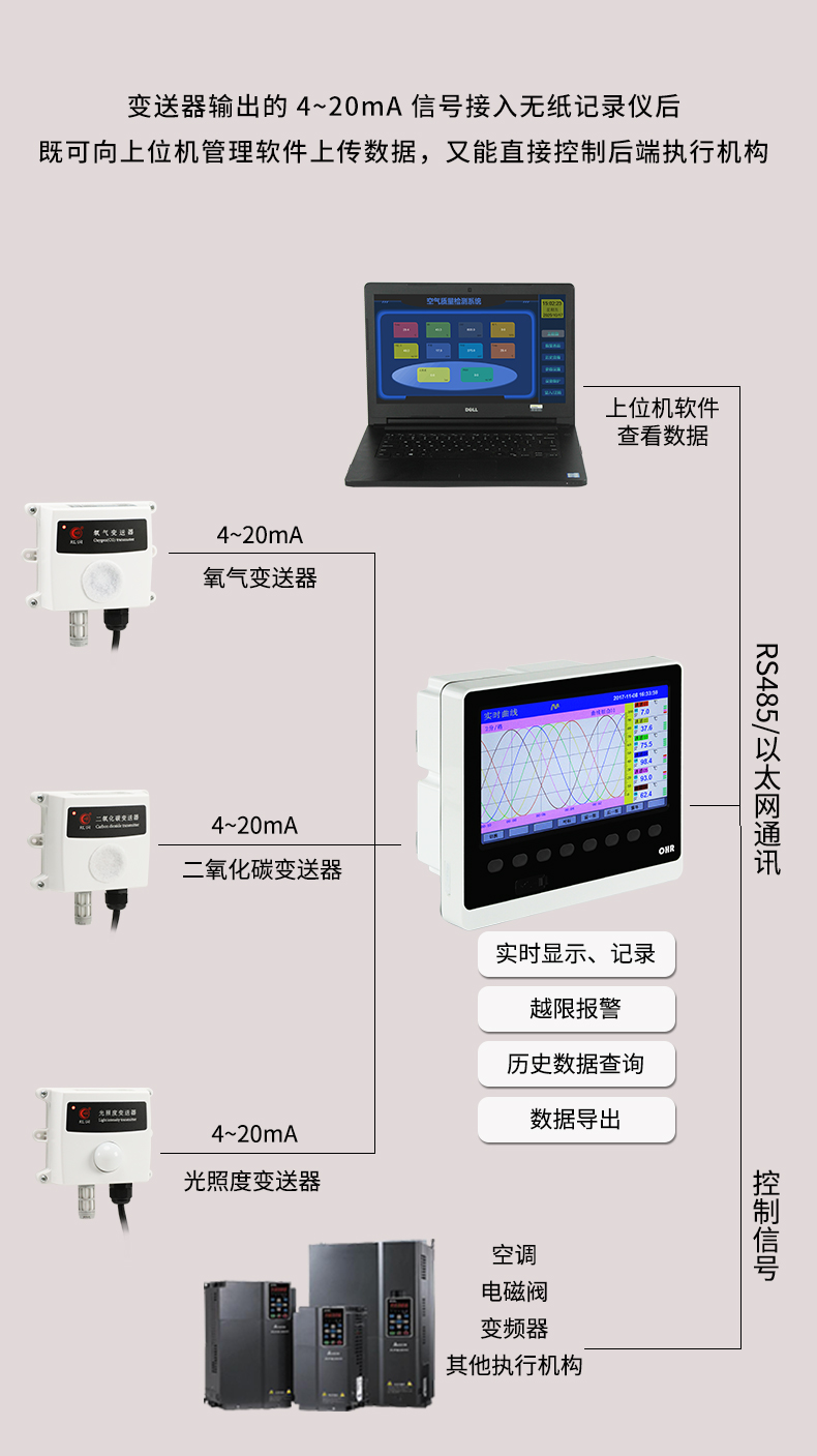 虹潤公司是專業(yè)生產(chǎn)環(huán)境監(jiān)測儀表的國家專精特新“小巨人”企業(yè)。生產(chǎn)的二氧化碳變送器,具有新型紅外檢定技術(shù),自動溫度補償,響應(yīng)靈敏,低功耗,模擬量變送輸出或RS485通訊等特點。產(chǎn)品獲得一種農(nóng)業(yè)監(jiān)控變送器、一種儀表電源等2項實用新型專利,主持起草現(xiàn)場設(shè)備集成等5項智能制造國家標(biāo)準(zhǔn),以及現(xiàn)場設(shè)備工具(FDT)接口規(guī)范、物聯(lián)網(wǎng)總體技術(shù)智能傳感器特性與分類等2項國家標(biāo)準(zhǔn),參與國際5G標(biāo)準(zhǔn)制定,取得農(nóng)業(yè)監(jiān)測變送器等3項相關(guān)軟件著作權(quán)。產(chǎn)品廣泛應(yīng)用于機房、配電站、地下車庫、工廠倉庫、食品儲存、養(yǎng)殖場、果蔬林園等環(huán)境場合對二氧化碳濃度的檢測。