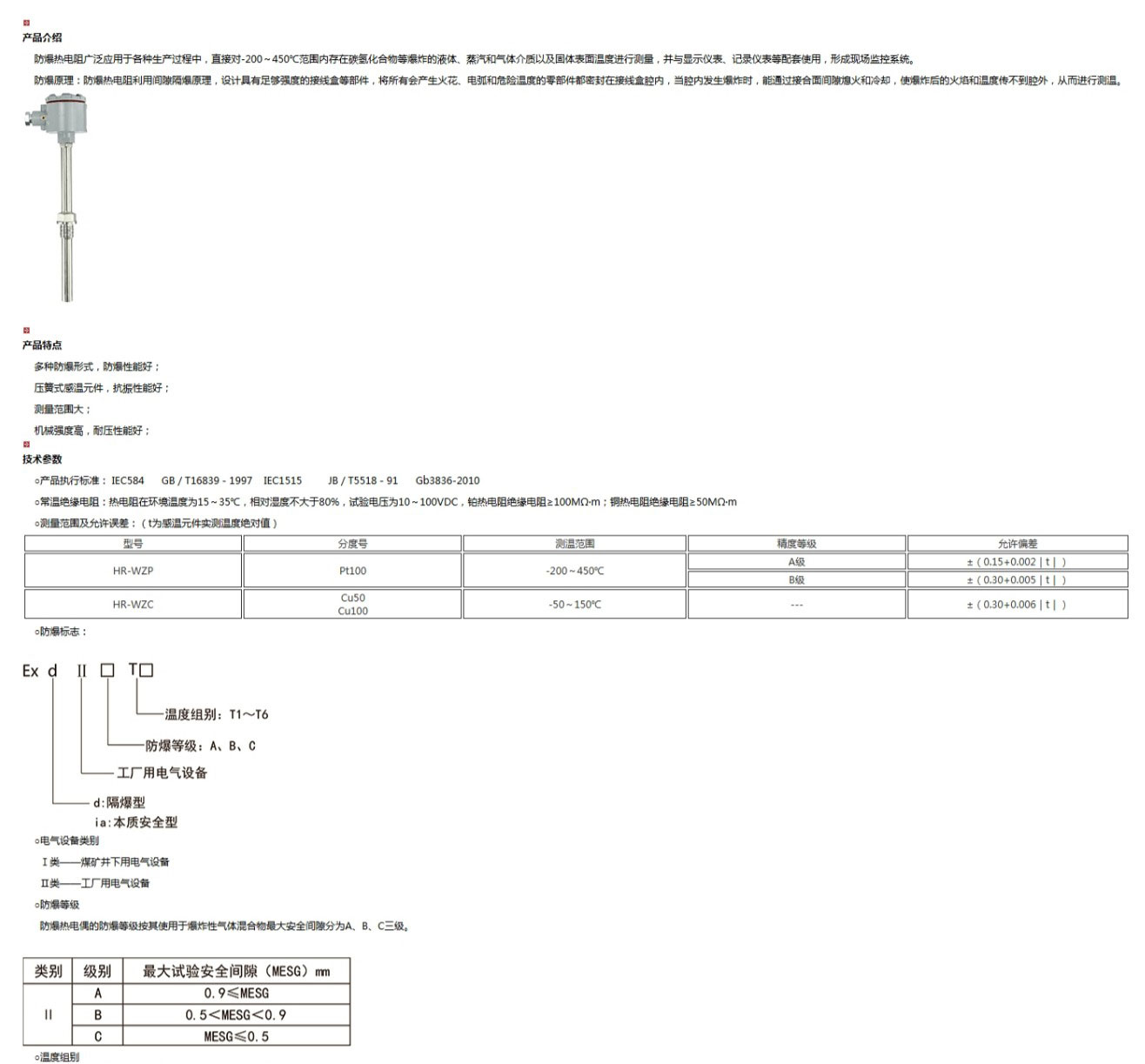 防爆熱電阻廣泛應(yīng)用于各種生產(chǎn)過程中,直接對(duì)-200~450℃范圍內(nèi)存在碳?xì)浠衔锏缺ǖ囊后w、蒸汽和氣體介質(zhì)以及固體表面溫度進(jìn)行測(cè)量,并與顯示儀表、記錄儀表等配套使用,形成現(xiàn)場(chǎng)監(jiān)控系統(tǒng)。