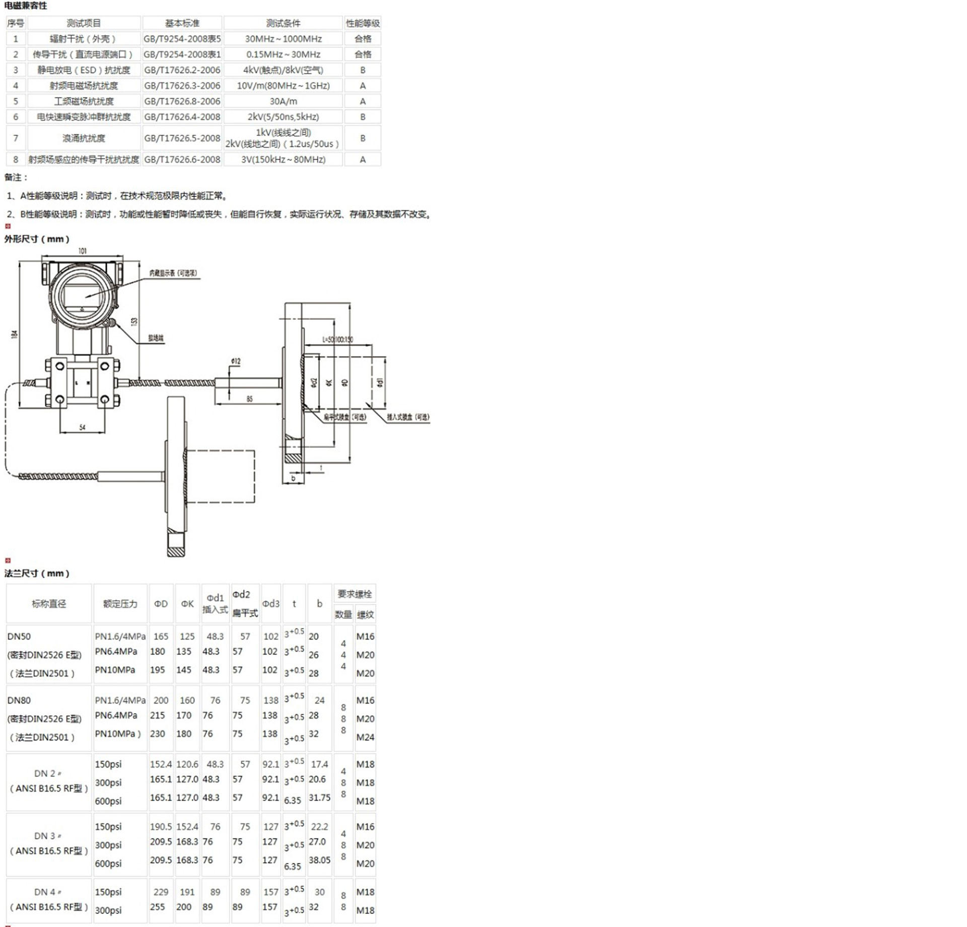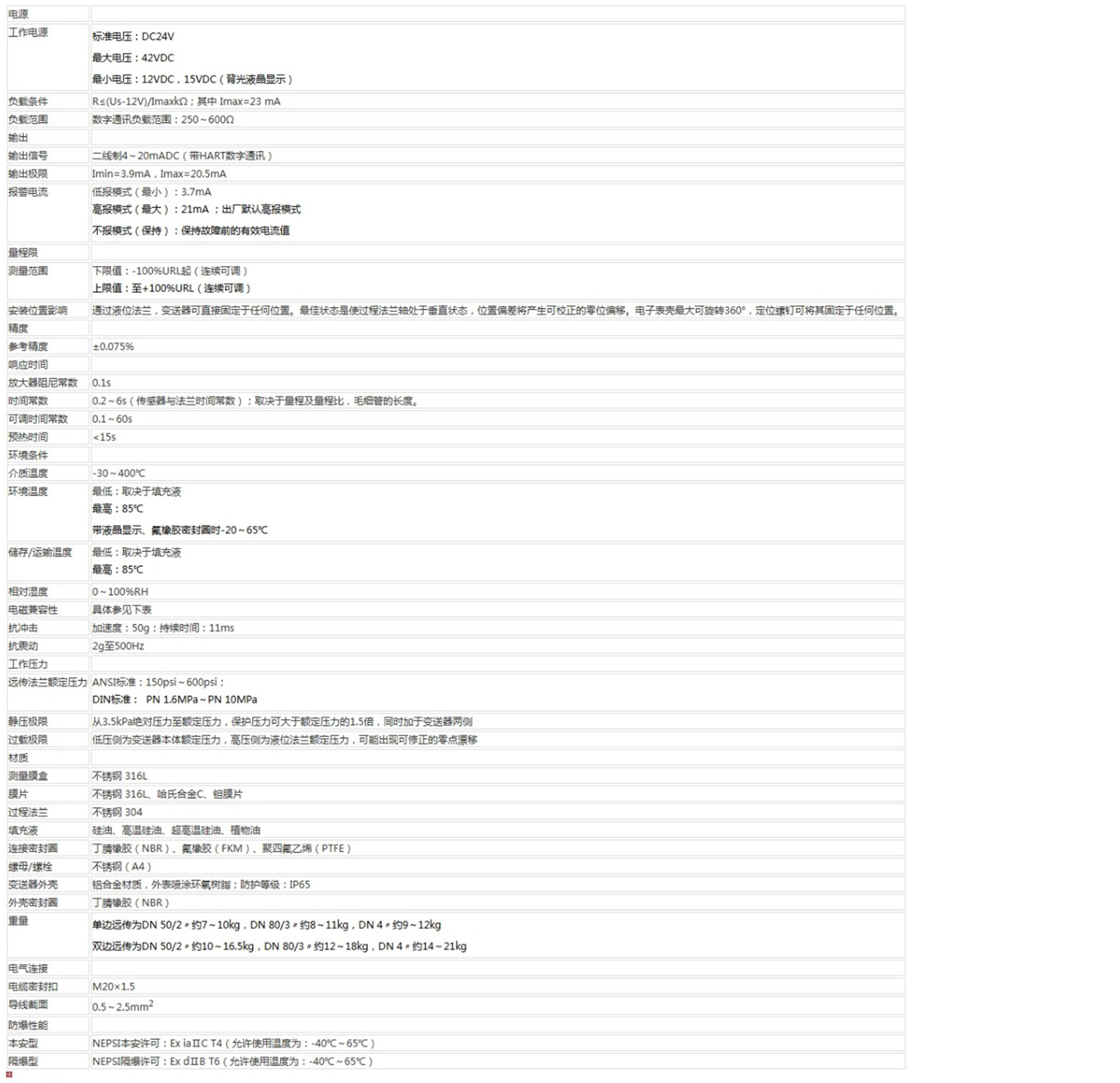 該產(chǎn)品用于測(cè)量液體、氣體或蒸汽的液位、密度、壓力,將其轉(zhuǎn)變成4~20mA (HART)電流輸出信號(hào),可通過(guò)RST375手持終端對(duì)它們進(jìn)行參數(shù)設(shè)定、過(guò)程監(jiān)控等。測(cè)量范圍(未遷移時(shí))為0-1kPa~2MPa,液位法蘭的額定壓力分別為:1.6/4MPa、6.4MPa、10MPa、150psi、300psi或600psi。